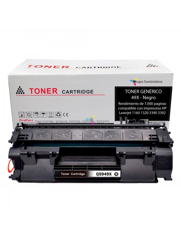 Tóner Genérico para usar con una amplia gama de impresoras, incluidas las HP LaserJet 1320 3390 3392. Si presenta dudas contacte nuestro servicio de ventas AQUÍ