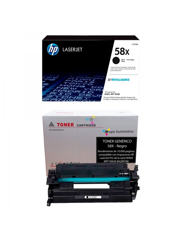 Recarga de tóner Original o Genérico de Referencia de HP 58X; para impresoras HP LaserJet Pro de la serie M404 MFP M428 M428FDW (Sin Chip)