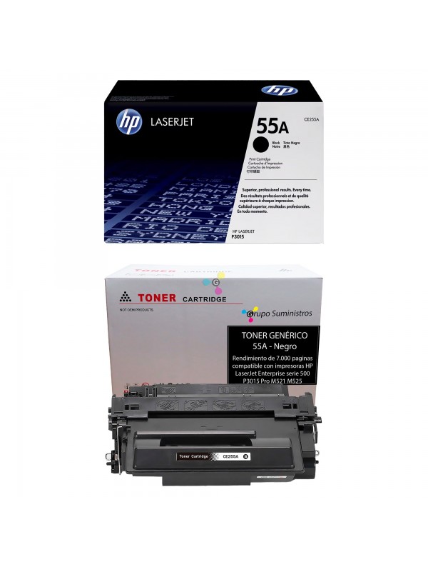 Recarga de tóner Original o Genérico de Referencia de HP 55A; para impresoras HP LaserJet Enterprise serie 500 P3015 Pro M521 M525.