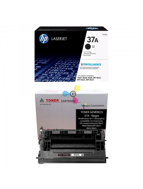 Recarga de tóner Original o Genérico de Referencia de HP 37A; para impresoras HP LaserJet Enterprise M607 M608 M609 MFP M631 M632 M633.