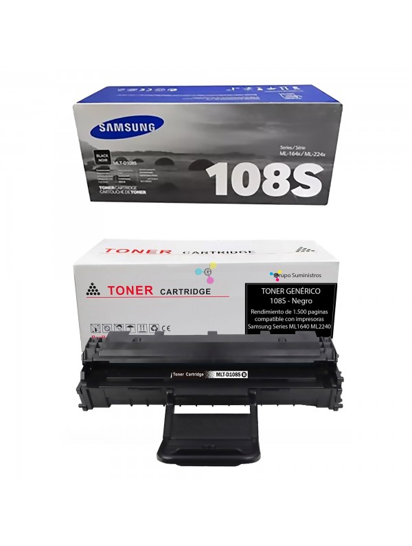 Recarga de tóner Original o Genérico de Referencia Samsung 108S; para impresoras Samsung Series ML1640 ML2240 (Con Chip)