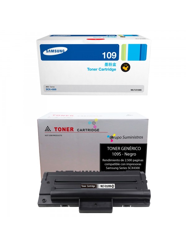 Recarga de tóner Original o Genérico de Referencia de Samsung 109S ; para impresoras Samsung Series SCX-4300 (Con Chip)