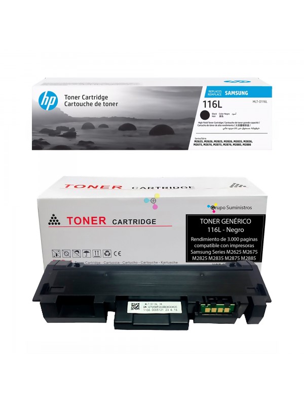 Recarga de tóner Original o Genérico de Referencia de Samsung116L; para impresoras Samsung Series M2625 M2626 M2675 M2676 M2825 M2826 M2835 M2836 M2875 M2876 M2885 M2886 (Con Chip)